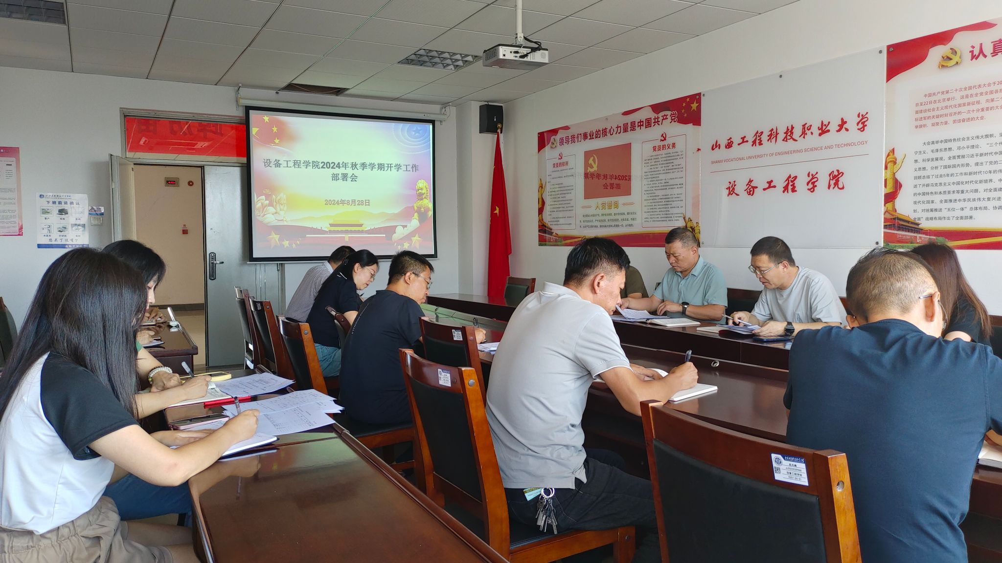 为贯彻落实好上级和校党委相关工作部署,扎实做好学院秋季开学各项工作,根据《山西工程科技职业大学2024年秋季学期开学工作方案》要求,8月28日上午,设备工程学院在1号教学楼601会议室召开2024年秋季学期开学工作部署会,传达上级和校党委相关工作要求,具体部署学院开学各项工作,学院领导班子成员,三办主任,各系主任、副主任,实训中心主任、副主任和各党支部书记、院团委负责人、专职组织员、专业负责人参加会议。会议由院党委副书记、院长陕晋军主持。