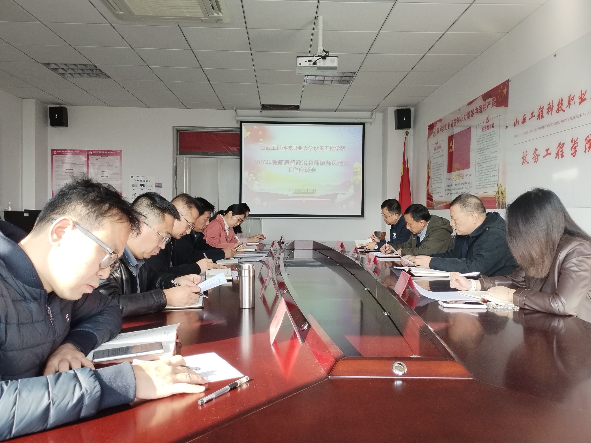 根据学校《关于召开 2025 年教师思政状况调研座谈会的通知》精神,为精准掌握学院教师思想政治动态,系统研判教师队伍思想建设现状,10月29日下午,设备工程学院在一号教学楼601会议室召开了学院2025 年教师思想政治和师德师风建设工作座谈会,学院师德师风建设领导小组成员、教师代表20人参加座谈会,会议由学院党委书记丁俊发主持。