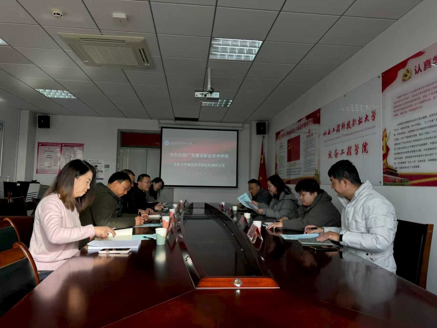12月1日上午,广西建设职业技术学院设备与环境学院党总支书记侯文淑一行4人莅临设备工程学院,就党建、团建、学生管理工作及本科专业群建设开展专题学习交流。