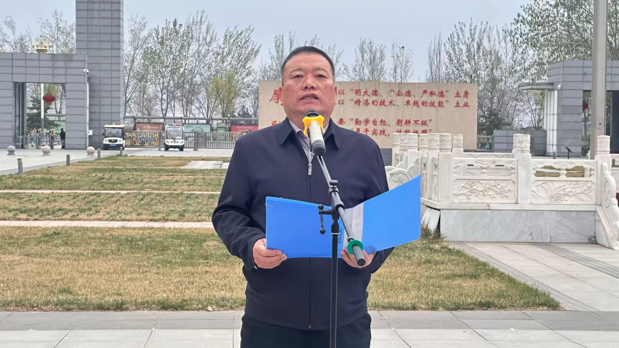 电气智能2505ZB班辅导员张瑞颖作为教师代表发言,她以清明慎终追远的内涵为引,寄语学子铭记先烈为家国挺身而出的担当,将校训精神融入专业学习与实操实训,立足学院职业本科专业特色,在钻研技术、打磨技能中精益求精,以技能报国的实干诠释新时代青年的使命与担当。